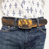 Belt Buckle Measures: 3" x 2" (7.6cm x 5cm) Our belt buckles will fit any snap belt from 1" to 1 3/4" inches wide