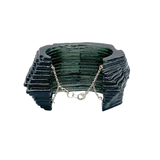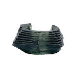 This dark grey translucent terrains cuff uses repetition to create its undulating form, refracting the light and hugging the body
