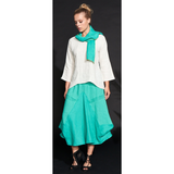 The Jade Cascade Circle skirt is great for those warmer days. This bright color pairs well with any colors and allows you to strut comfortably in high-quality natural fiber design.