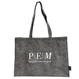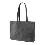 Long handle PEM logo tote bag made of 100% recycled PET 2 mm felt in dark grey. 45 x 13 x 32.5 cm