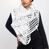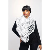 100% cotton woven strips of fabric, fabricated into a full wearable art piece. Take over any room you walk into with this piece.