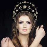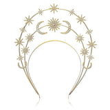 Sun Moon Stars Goddess Crown Halo Headband, Gold