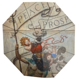 Located in the museum's garden atrium, N.C. Wyeth originally painted this mural for the First National Bank of Boston after the end of World War I. He drew on his skill as an illustrator to create an image that melds time and place. It is cartographically accurate for the 1920s while depicting fantastical figures that allude to maps of the 1600s.